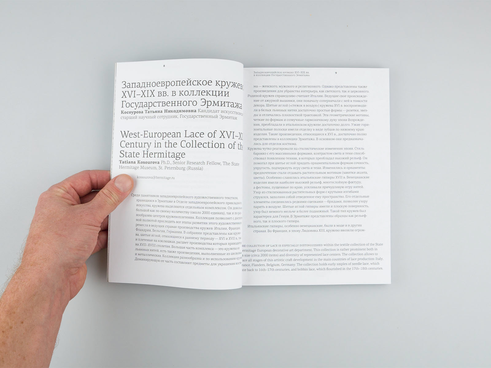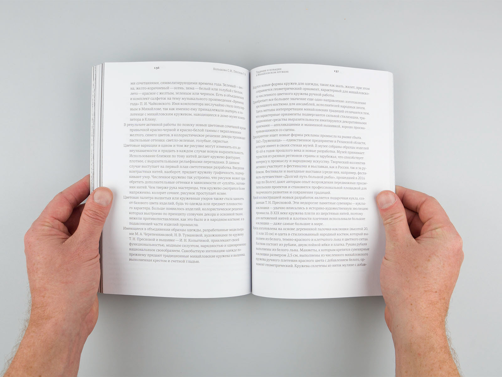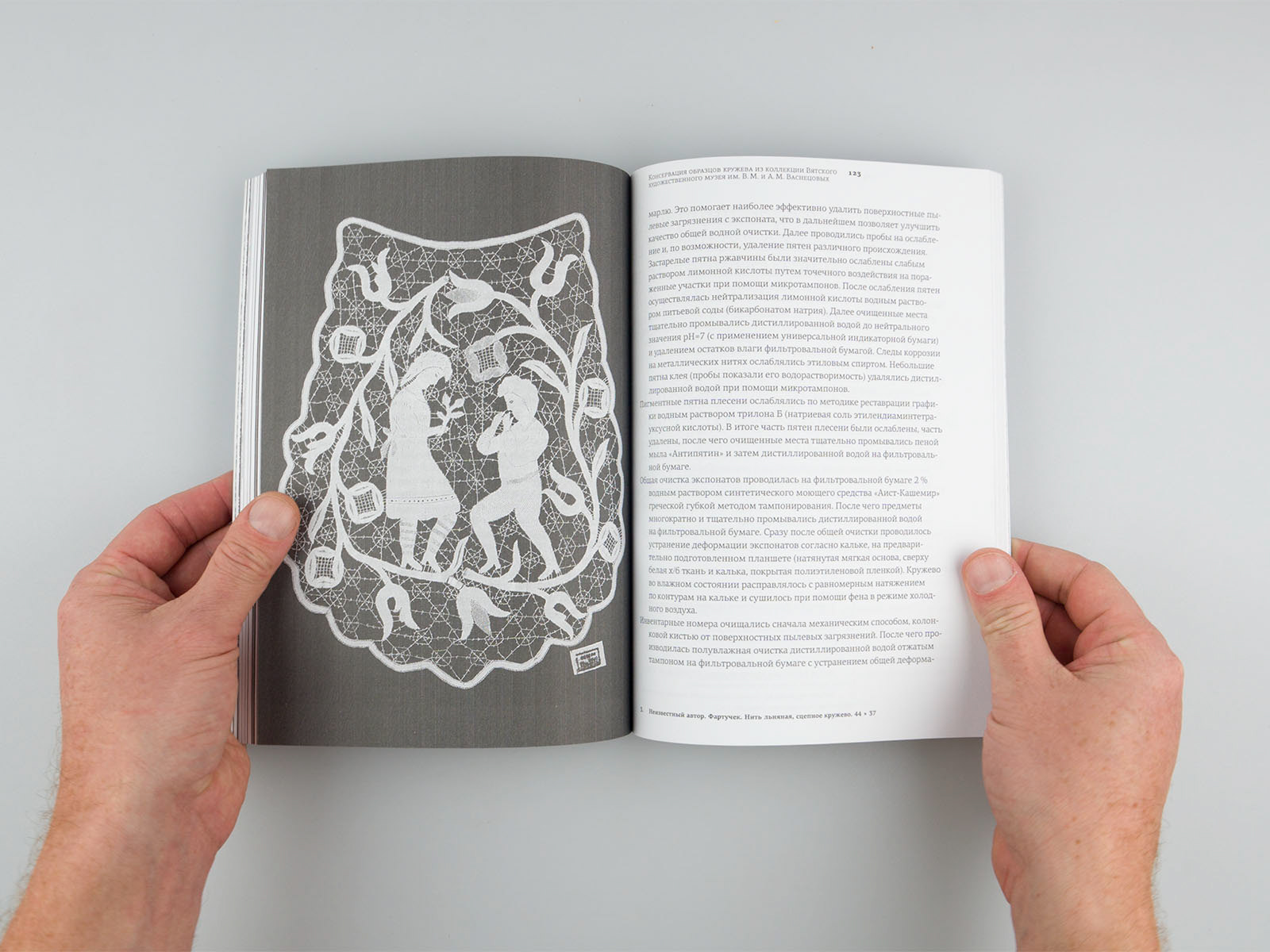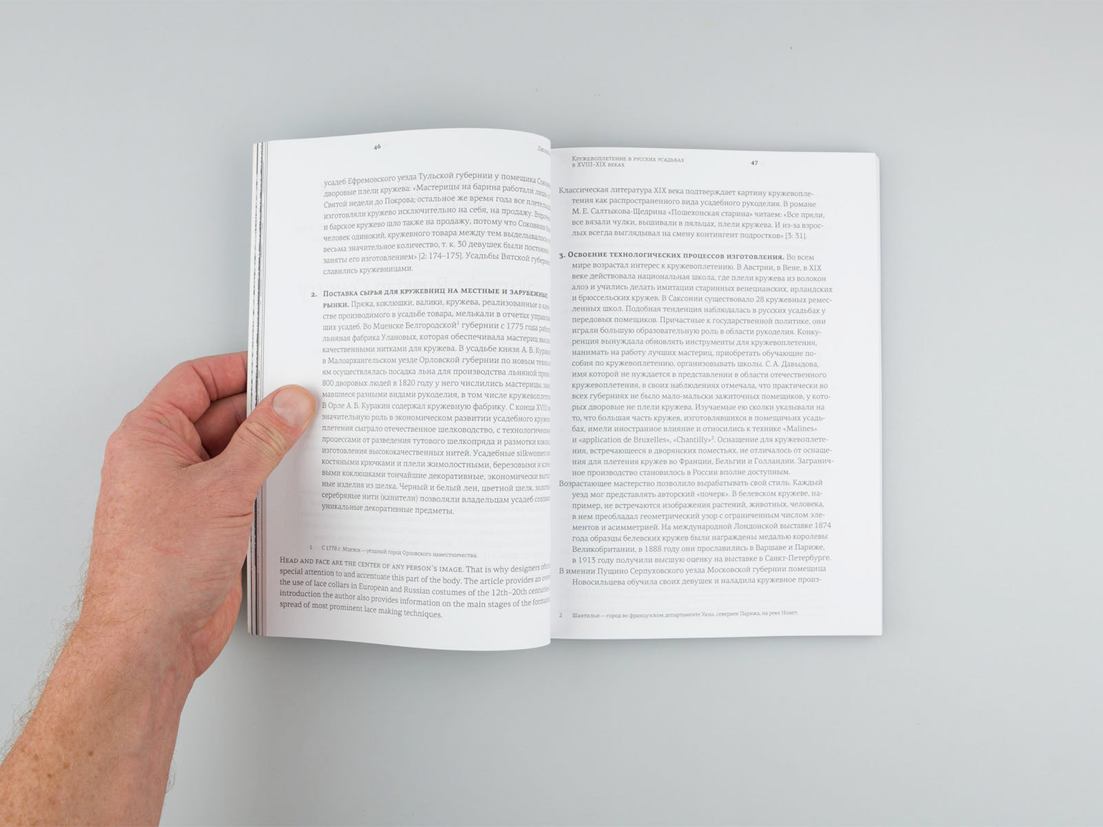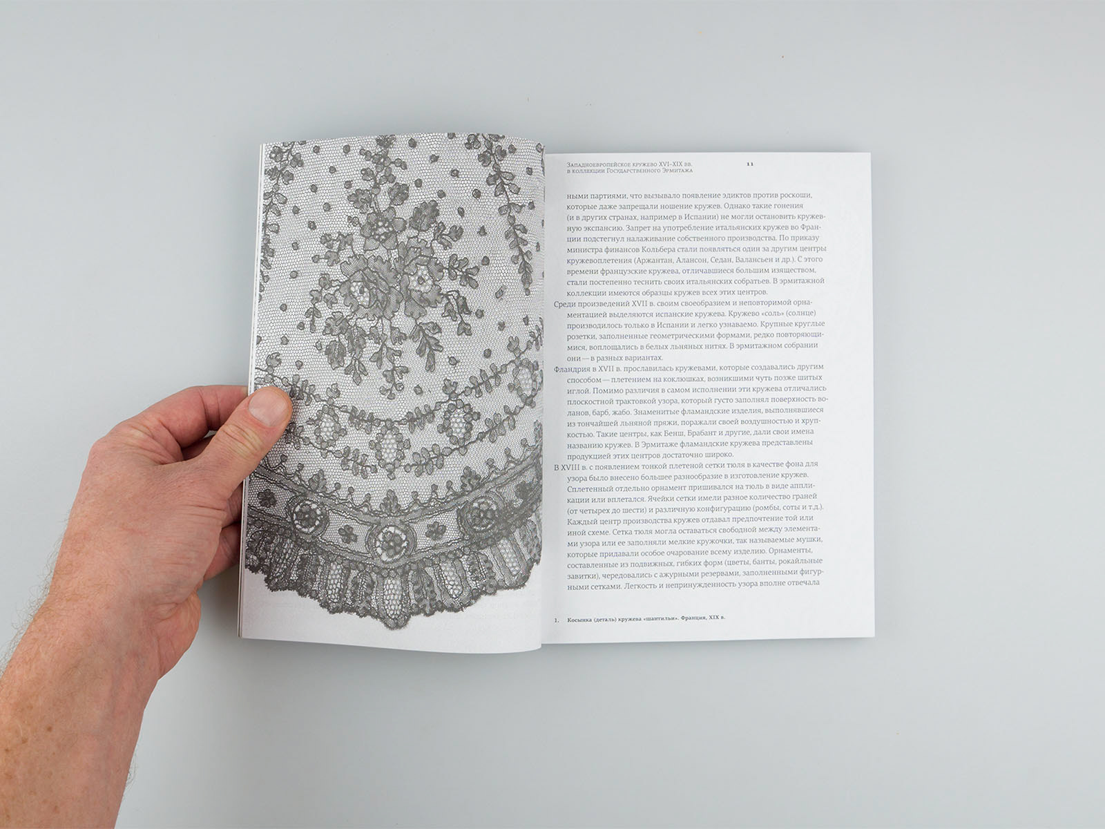 Clean layout and typography for better reading quality. Images of laces are full page for better details.