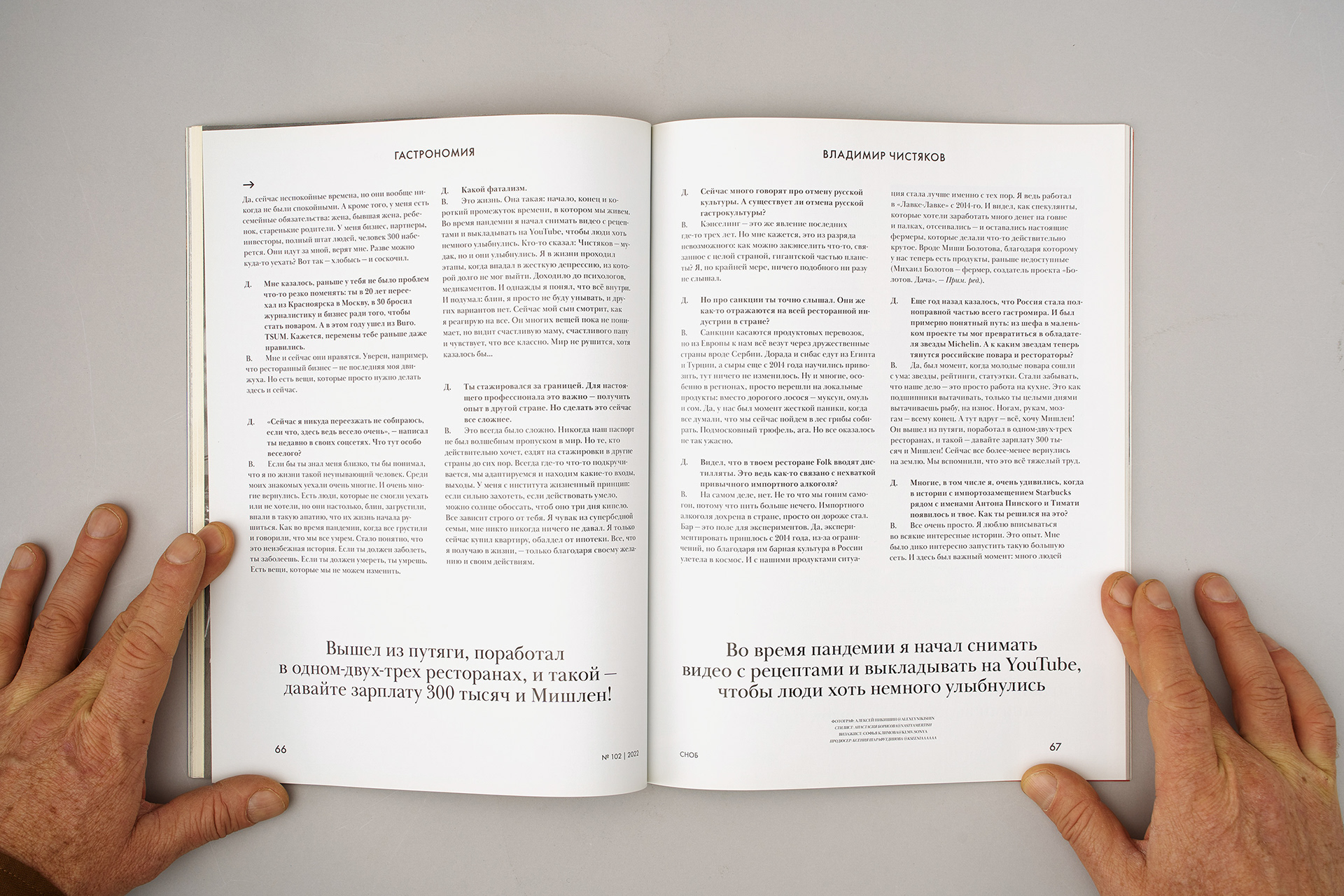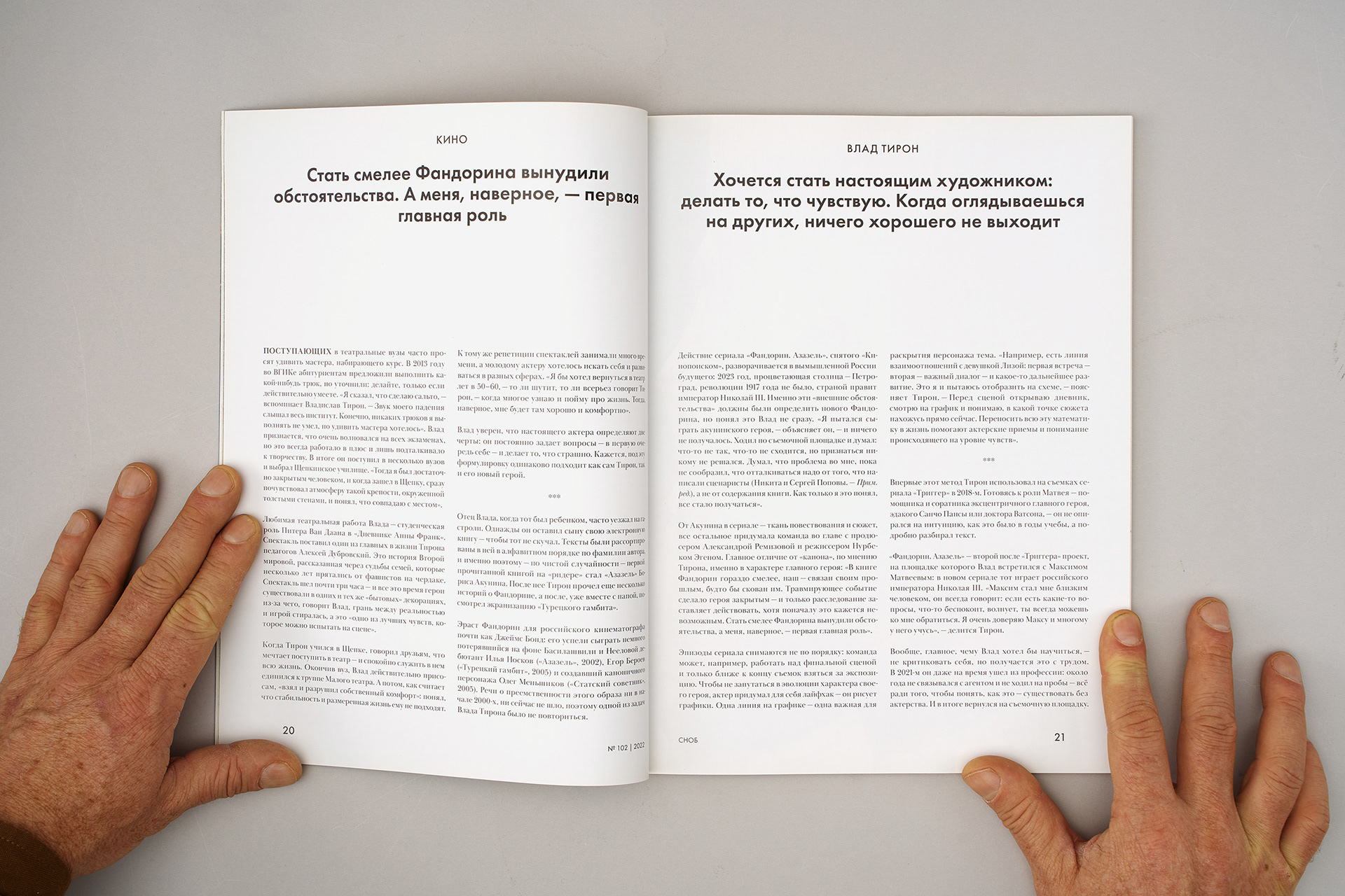 "Snob" is quarterly glossy magazine that highlights prominent figures in the fields of cinema, theater, music, business, and literature. I was invited as guest art director for second issue of 2022. Complete redesign is my vision how modern glossy magazine should look like. Clean typography, ultra style editorials, sharp details.